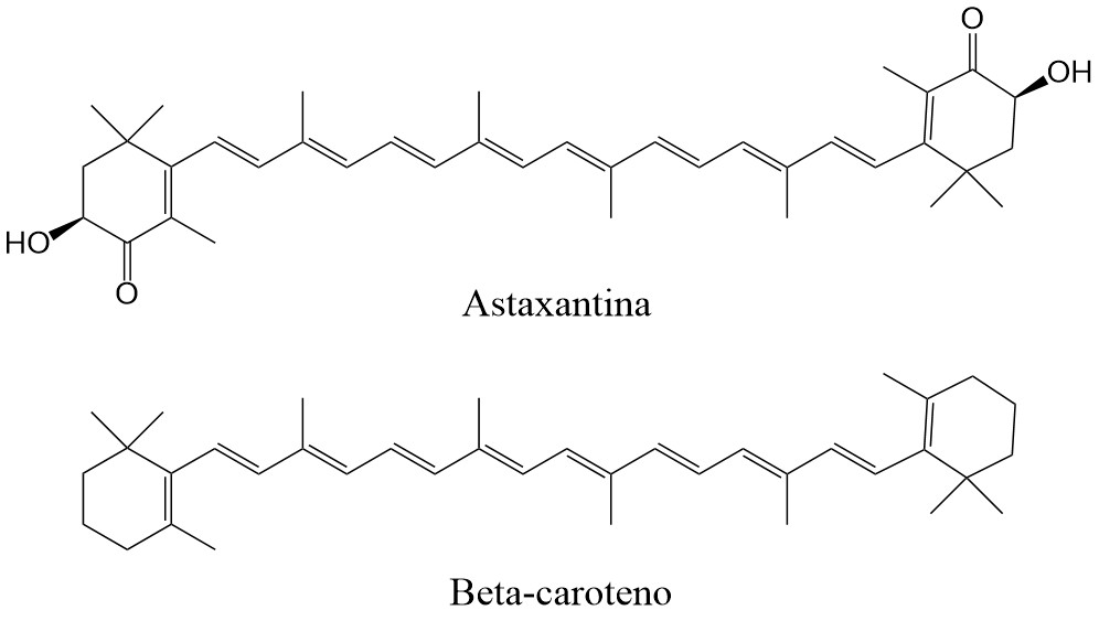 La AST se clasifica como un cetocarotenoide y posee una estructura molecular que le confiere una capacidad antioxidante superior a la de otros carotenoides como el betacaroteno, e incluso muy superior a las vitaminas como la C y E3.